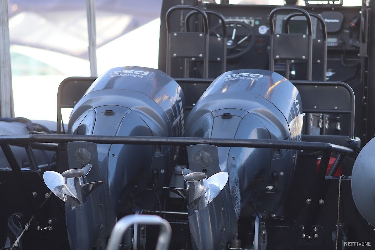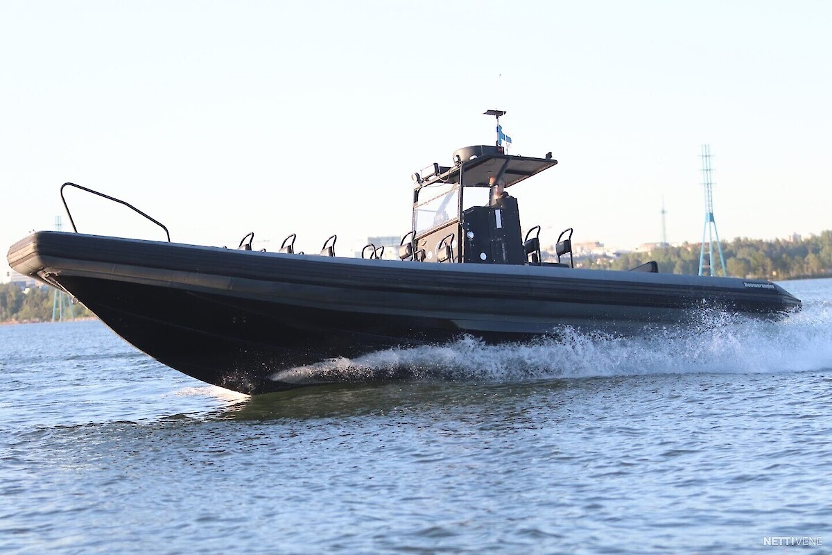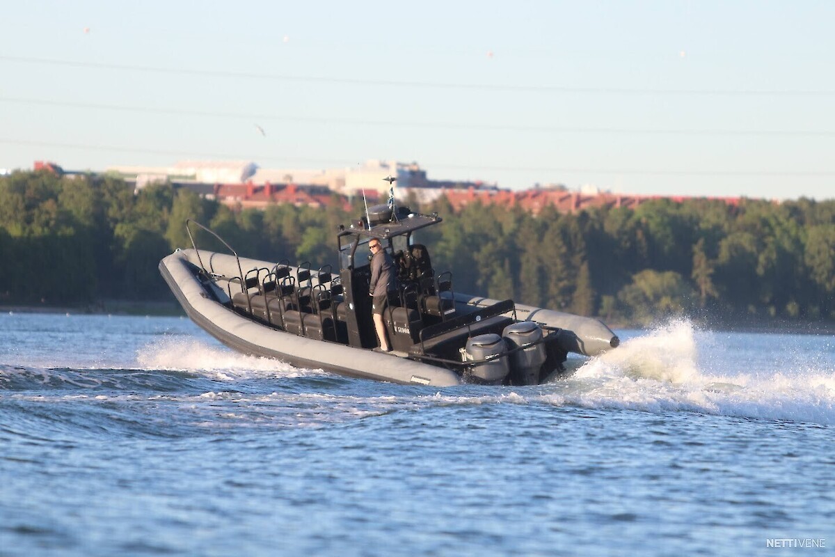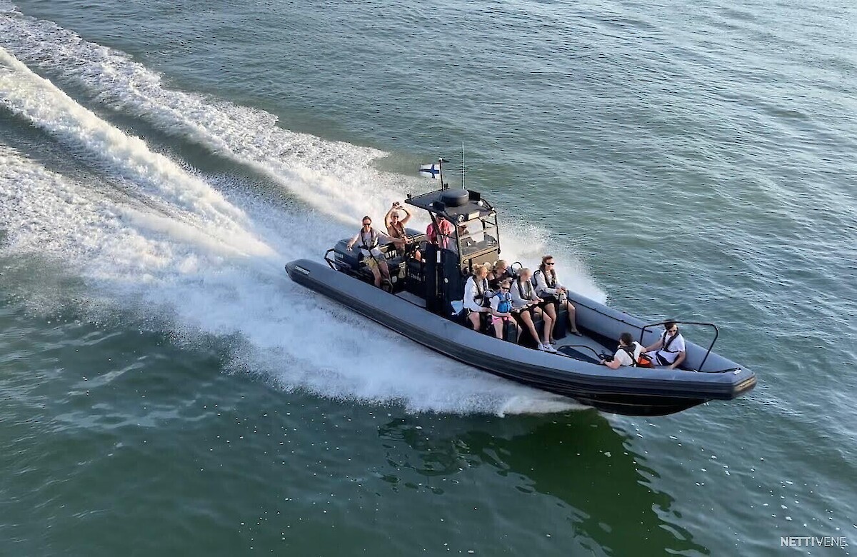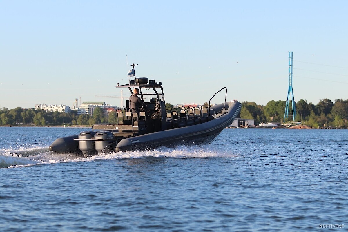 Nyt myynnissä vaativaan käyttöön soveltuva ja siihen suunniteltu BOOMERANGER RIB C-3500. Vene on Rigid Inflatable Boat (R.I.B.), jossa on kaksi 250 hv Yamaha -perämoottoria. Veneessä on tuulilasilla varustettu ohjauskonsoli ja neljä miehistön istuinta. Keulassa on 6 satulaistuinta, ja perässä penkki kahdelle tai kolmelle henkilölle. Täydellä polttoainesäiliöllä ja kevyissä sääolosuhteissa (tuuli alle 4 m/s) veneen nopeus kolmella henkilöllä on noin 45 solmua. Toimintamatka on vähintään 170 merimailia risteilynopeudella ja 800 litran polttoainekapasiteetilla. Kokonaispaino on 2 980 kg, jolloin maksimaalinen hyötykuorma on noin 3000 kg. Ajettavuuden (trimmin) säilyttämiseksi etukannelle suositellaan kuitenkin lastattavan enintään 1500–2000 kg. Rungon tai kannen rakenteissa ei käytetä vaneria. Pohjan V-kulma on 26 astetta. Jäykkää runkoa ympäröi täytetty ponttonikaulus (halkaisija 600 mm perässä). Pontoonin materiaali on Hypalon/Neopreeni. Ponttonit on vaihdettu kerran, ja nykyiset on paineistettu 2023. Runko on jaettu neljään vesitiiviiseen osastoon. Rungon koko pituus on suojattu AISI 316 ruostumattomasta teräksestä valmistetulla kölisuojalistalla, joka on kiinnitetty runkoon liimaus- ja tiivistysaineella sekä pulteilla. Polttoainesäiliö on valmistettu ruostumattomasta teräksestä, ja sen tilavuus on 800 litraa. Veneessä on kaksi 55 Ah 12 V Optima-akkua, joissa on 2-napainen pääkytkin. Veneessä on maasähköjärjestelmä kaapeleineen, adaptereineen, vikavirtasuojineen ja akkulatureineen. Valaistus Neljä Hella 8157, 12 V, 55 W työvaloa targakaareen asennettuna. Aqua Signal Bremen -hakuvalot ohjauskonsolissa. Aqua Signal Toronto tai vastaava karttavalo ohjauskonsolissa. Navigointivalot Hella Marine 2984-sarja. NAVIGOINTI- JA VIESTILAITTEET: Tutka, Raymarine C80, Garmin GPSMAP 922xs Plus, GPS I19x NMEA 2000, GPS-anturi, Raymarine Raystar 125, VHF-radio, Icom, Kaikuluotain, Raymarine DS500x, Kompassi, Suunto C-65, Torvi. JNE…