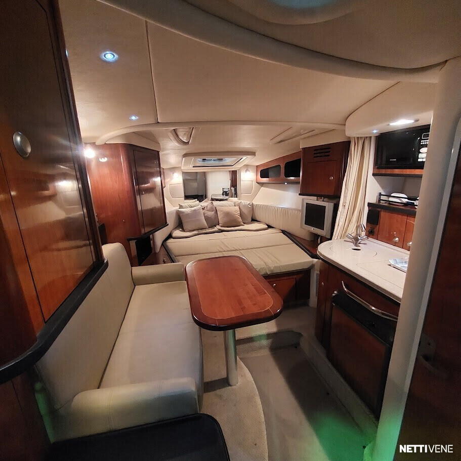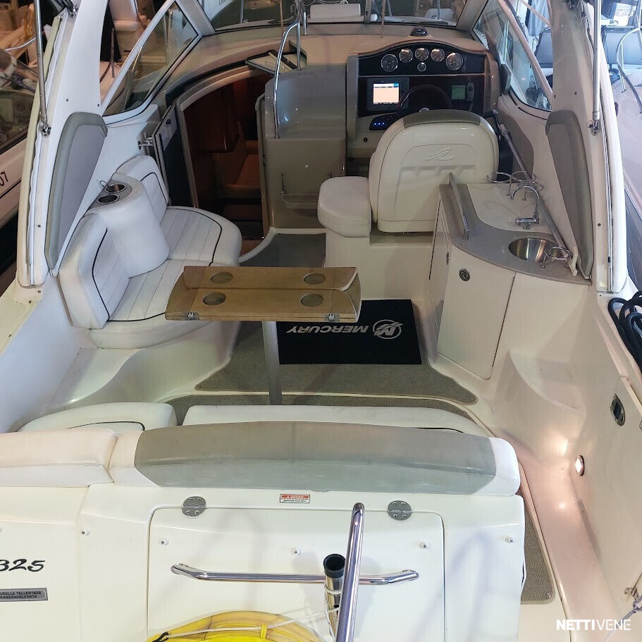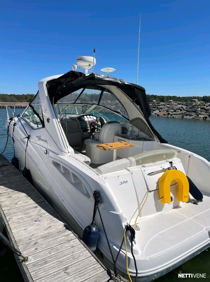 Sea Ray 325 on aina säilytetty sisähallissa. Tilava ja hyvin varusteltu cruiser, joka soveltuu erinomaisesti matkaveneilyyn ja viikonloppureissuille. Varusteet: